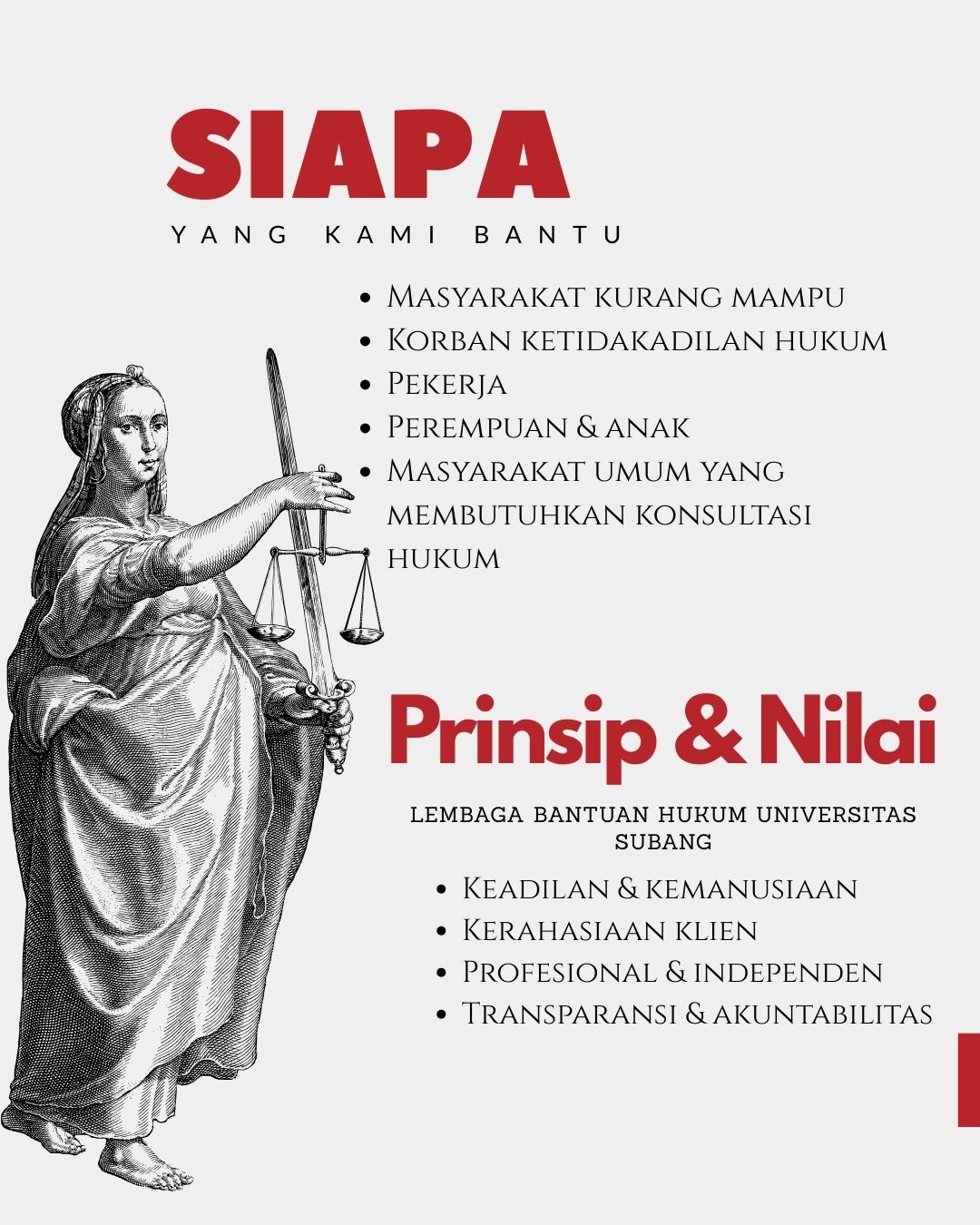 - Individu atau kelompok yang membutuhkan pendampingan hukum dan memenuhi syarat bantuan hukum